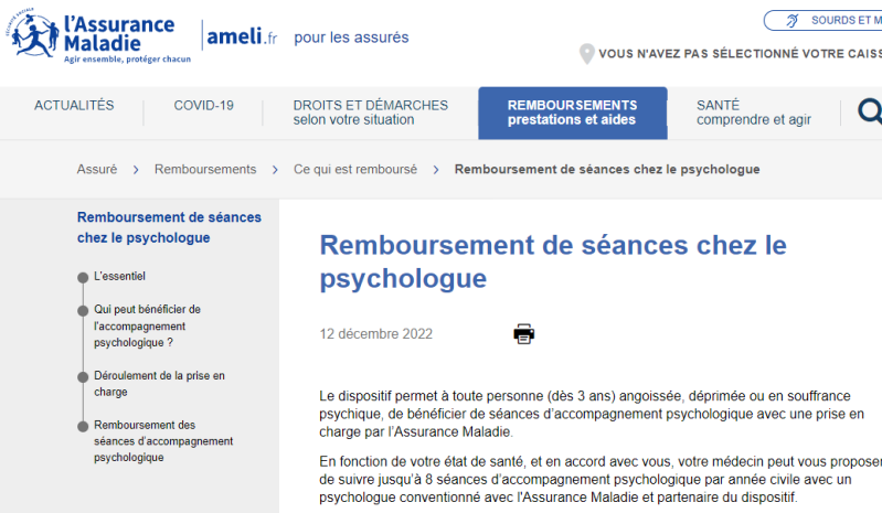 vous pouvez bénéficier du Dispositif de remboursement de consultations par la sécurité Sociale et votre complémentaire :